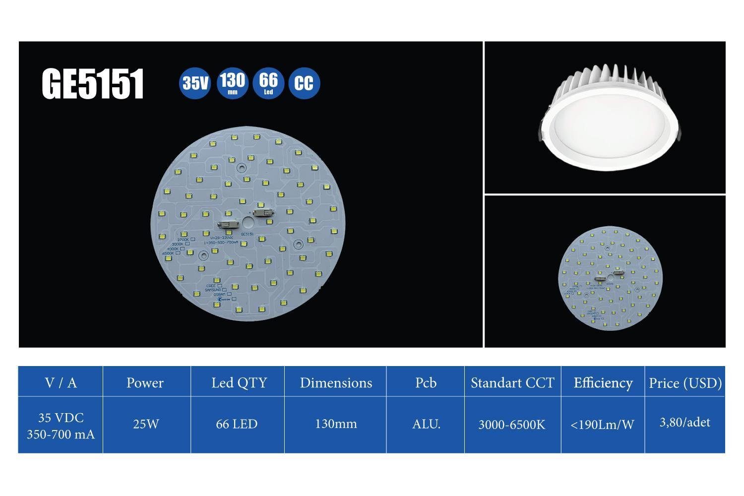 GE5151 25W 35V 700MA GÜNIŞIĞI 3000K 66LED 130MM